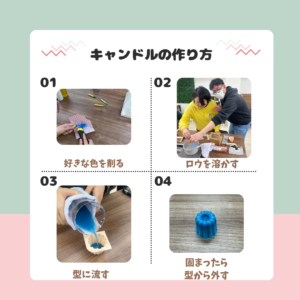 お昼休憩を取り、午後からはレクリエーションにてキャンドル作りを実施しました🥣✨